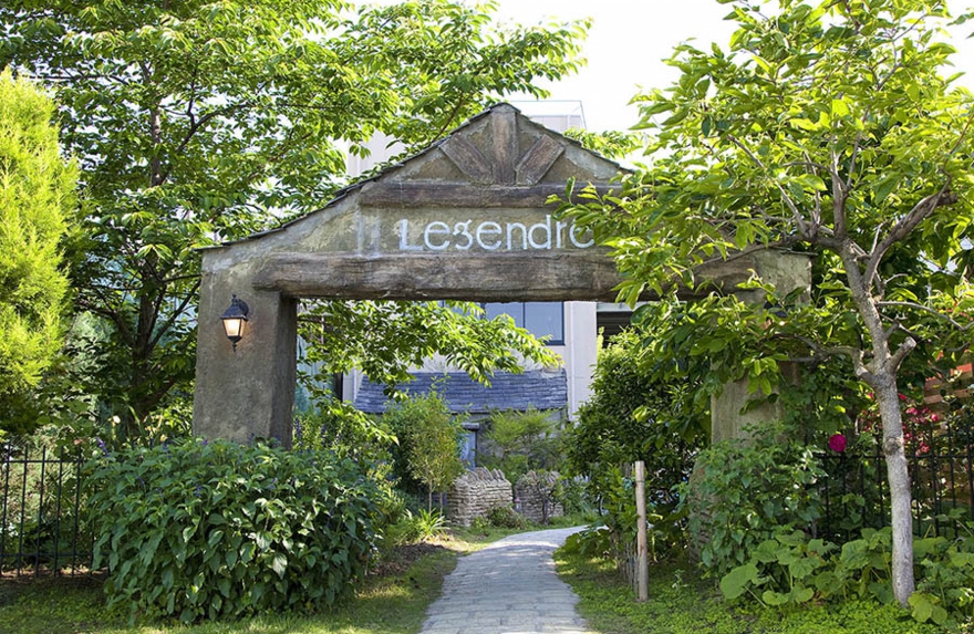 店舗建築施工例・ルジャンドル洋菓子長田店庭園 ●納屋と庭園および入口ゲートと駐車スペース