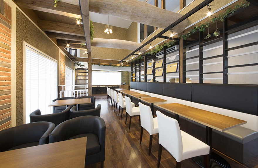 店舗建築施工例・ルジャンドルアネックス2F喫茶室北側から南側方向