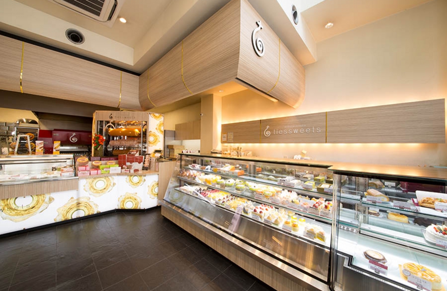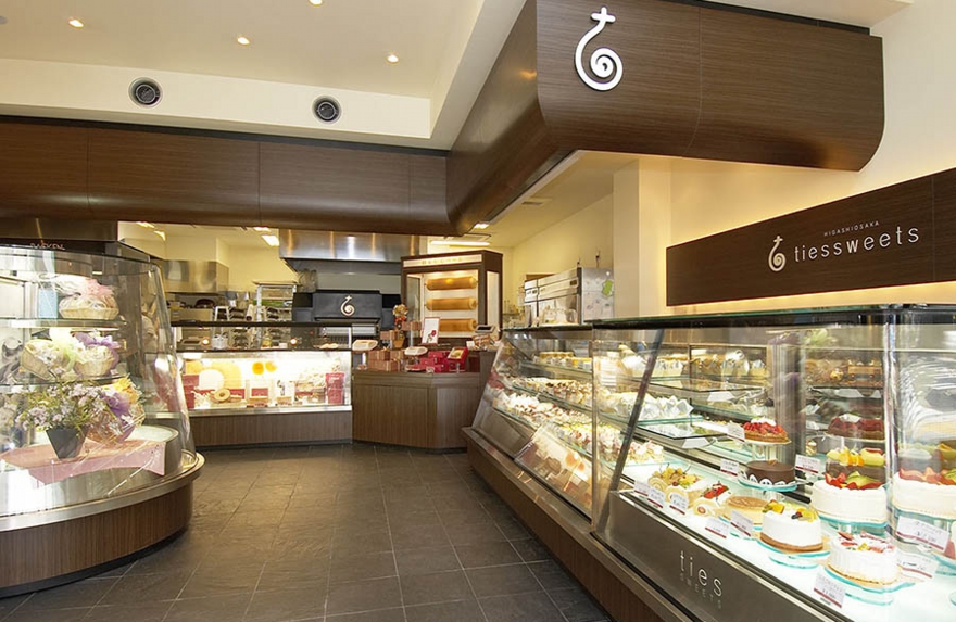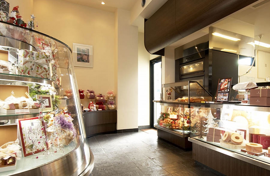 店舗建築施工例・ルジャンドル洋菓子長田店1F店内 ●鉄骨・アスロック 3階建て、のべ床面積 306㎡