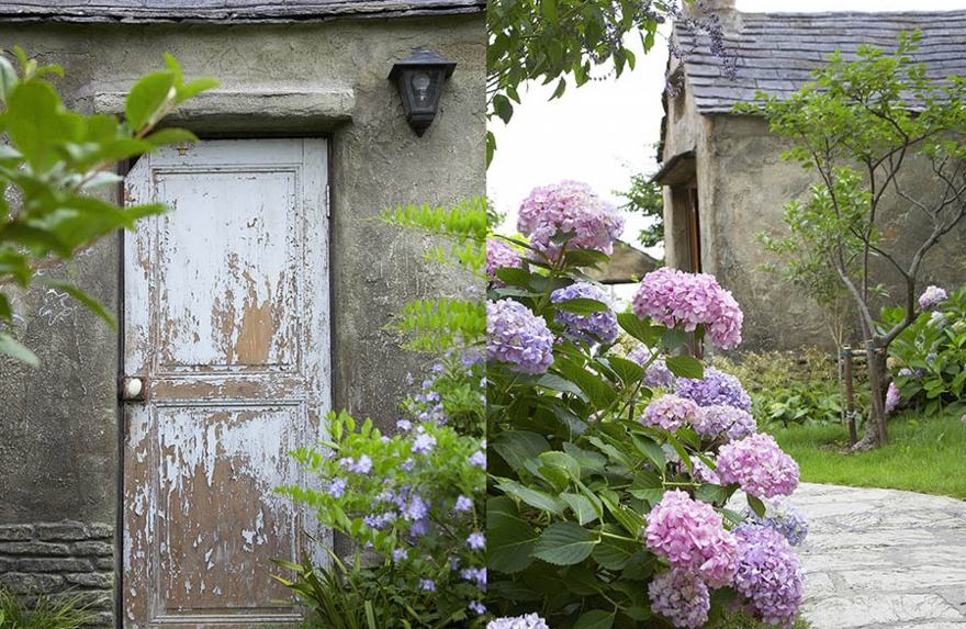 店舗建築施工例・ルジャンドル洋菓子長田店庭園 ●納屋と庭園および入口ゲートと駐車スペース