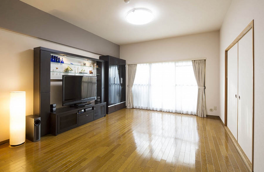 Lemodel Photo 03 リビング15帖 / 壁に設置されていたスピーカーとクーラー穴、照明器具の取付け穴を修復し壁と天井を張替え。