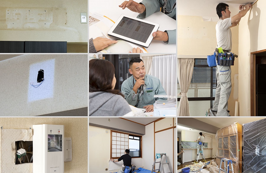 壁穴補修とクロスの張替え・・・禁煙された施主宅3LDKの室内(リビング・キッチン・和室・廊下・トイレ)のクロスを張替えました。天井・リビング等の壁穴を補修、新設共有機器のインターホンを壁ギリギリまで埋め込み直し、出っ張りを低減させました。事前の打ち合わせと最適なアドバイスでリフォームが完了しました。